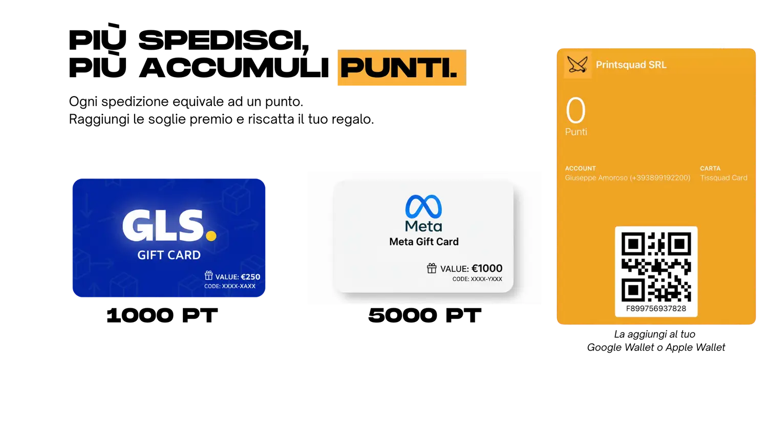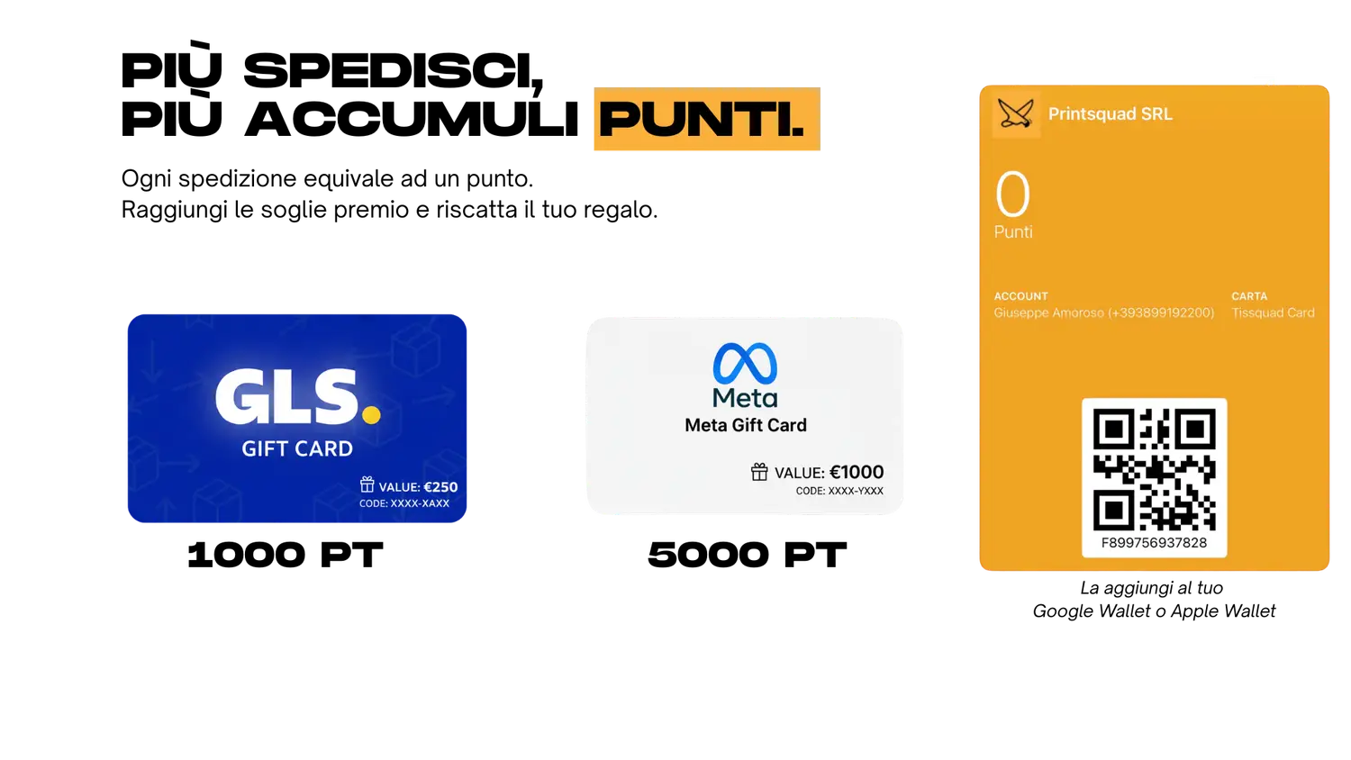 Appena diventi cliente puoi richiedere la Tissquad Fidelity Card, aggiungerla in Google o Apple Wallet e accumulare punti.